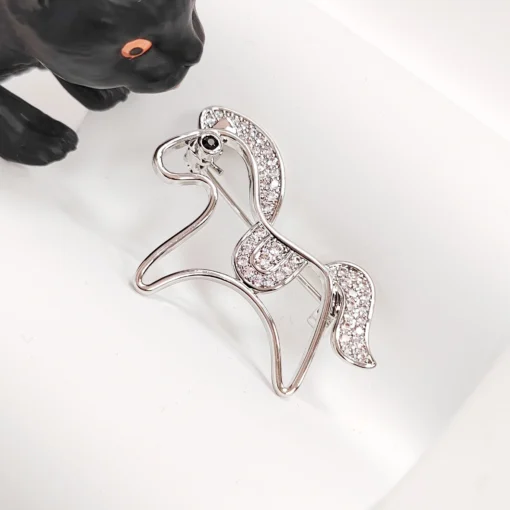 Crafted with fluid silver-toned contours tracing a poised silhouette – frosted radiance scattering across textured plains like starlight on snow. An onyx gaze anchors each graceful stance, while constellation-like accents bloom through nature’s articulated artistry.