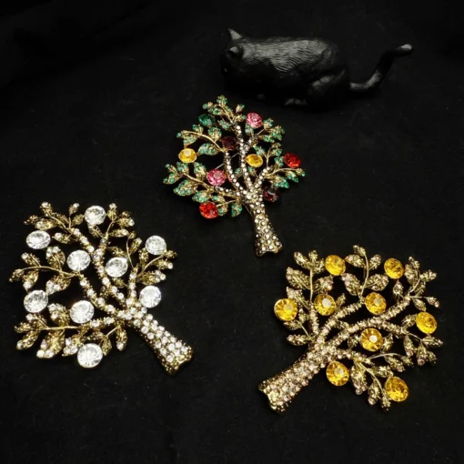 Wealth Guardian – Colorful Crystal Money Tree Brooch (Green)